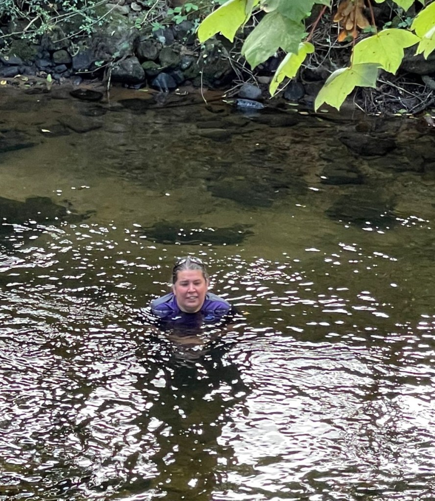 The following day, I wanted to try again, this time, in the same section of the river, I went in up to my shoulders. I was unable to swim as there was no space here, but I achieved what I had wanted to do, and that was to submerge myself fully except for my head.