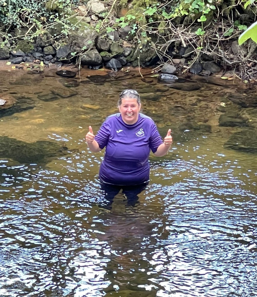 My first experience was just testing out the water (no pun intended). I entered the river Tawe, which runs alongside my fields in Abercrave, and walked in up to my waist. That was far enough for day one.