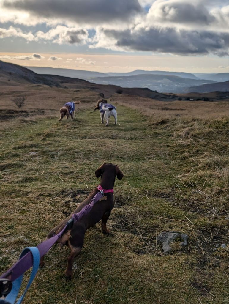 Day 3: Friday January 3rd.. My last proper day off work and I wanted to make the most of it. Decided on a walk with the dogs up Penwyllt. Honey, Motsi and Delilah. This was the most amazing walk. Perfect weather. Blue blue skies, sun shining, air temperature 2° but felt so much warmer. I was only planning on an hour’s walk but I was loving it so much I just kept on going. I really didn’t want it to end. Ended up walking for 10kms, and 2 hrs 50 minutes. Mostly up hill, and one path was really steep. Great workout for the lungs. The dogs had the best time too, perfect way to end the holidays. The views from the top were breathtaking, I could see for miles and miles. I highly recommend Penwyllt for a walk.