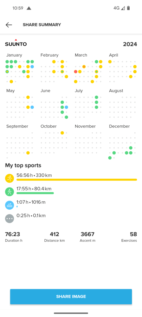 Like the majority of people after Christmas, I was feeling very motivated to get fit, and decided to set myself a challenge. Last year, despite running the London Marathon, I did not exercise for very many days. Here is my 2024 calendar of exercise: