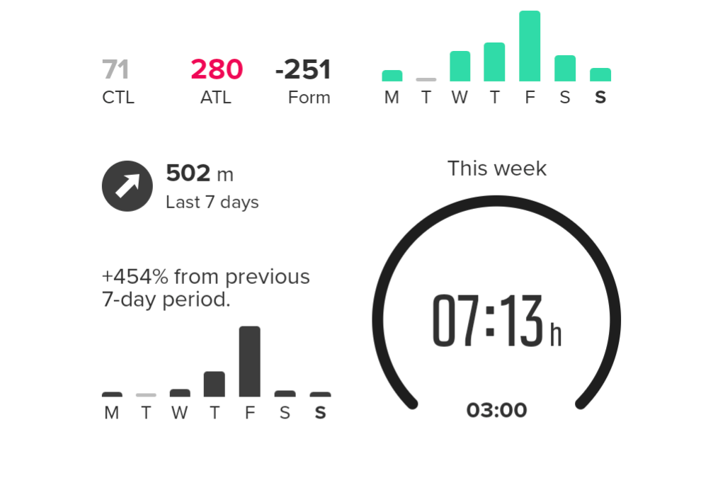 Week 1 down, although it was only 5 days. Feeling great for getting out there. Back to work tomorrow so this is where it will get tricky, and probably boring haha.