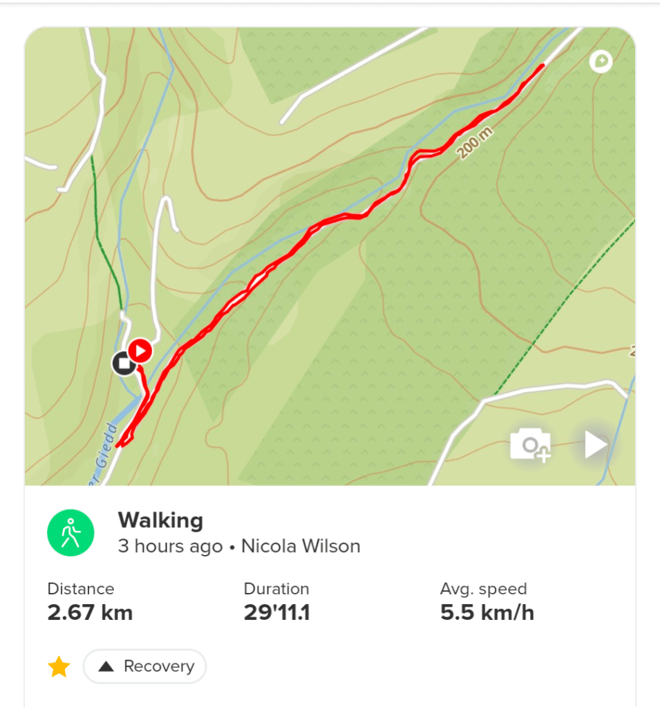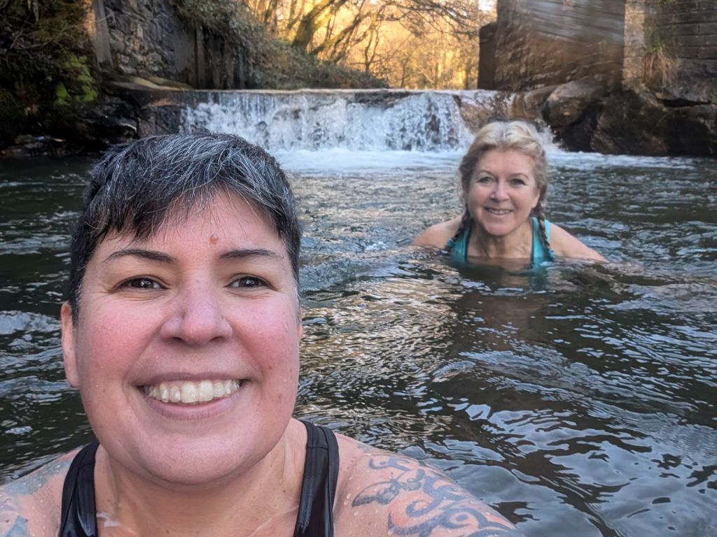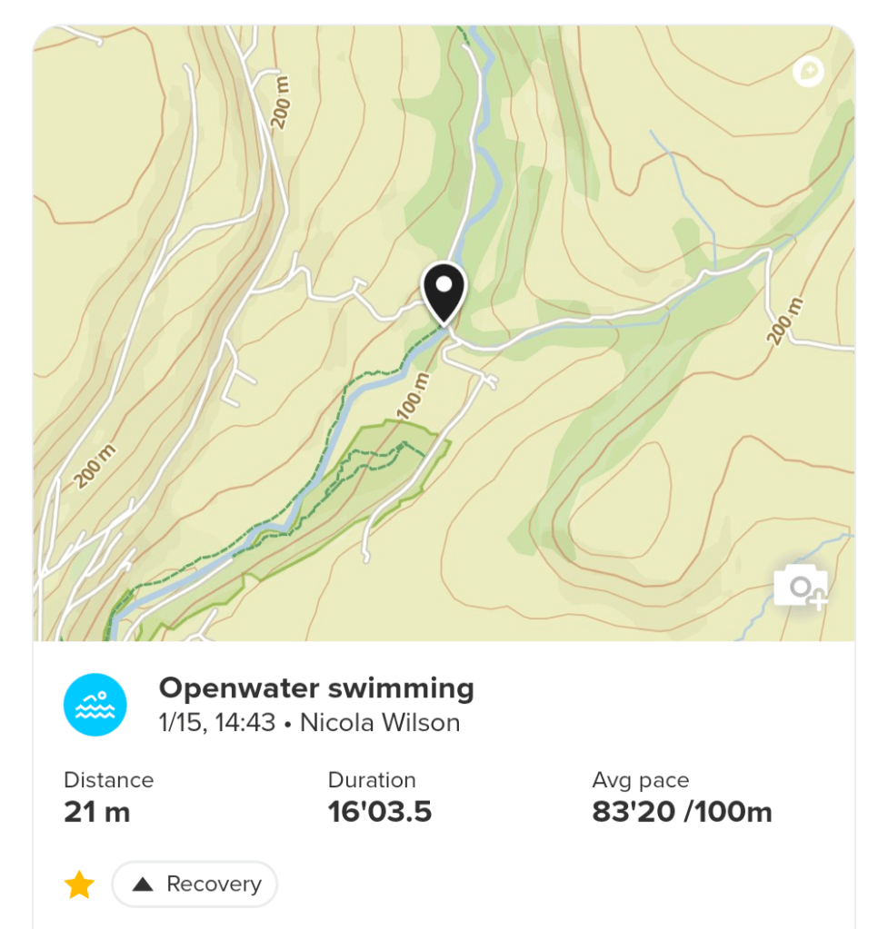 Walking done for the day and it was off to Pontardawe to get my haircut. Whilst in Ponty I thought it would be a good opportunity to go for a swim to the secret place, so I met up with Judith after my hair appointment. This was one of the most amazing invigorating swims I’ve done in ages. The water was flowing quite fast and it was like swimming on a treadmill. Loads of effort and not going anywhere. We did eventually manage to swim up to the waterfall and the power of it hitting my back was like a crazy rough jacuzzi 🤣. The water was really cold and fresh, it just felt amazing. After this swim I was on a high all night, it gave me a massive energy boost.