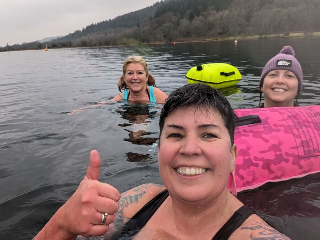 Sunday January 19th – Sunday is swim day and I got to go to Spring Valley Lakes with Judith and my sister Jo. This was Jo’s first time joining us for a swim since my new years day dip in the sea last year. We got in the lake, the water was cold and refreshing. Jo started swimming and we couldn’t keep up with her, haha. A lovely 13 minutes swimming from bouy to bouy. I was really impressed with how well Jo did for her first time at the lake. Hopefully the first of many. Air temp 4° and a dull cloudy day, it was pretty cold 🥶.