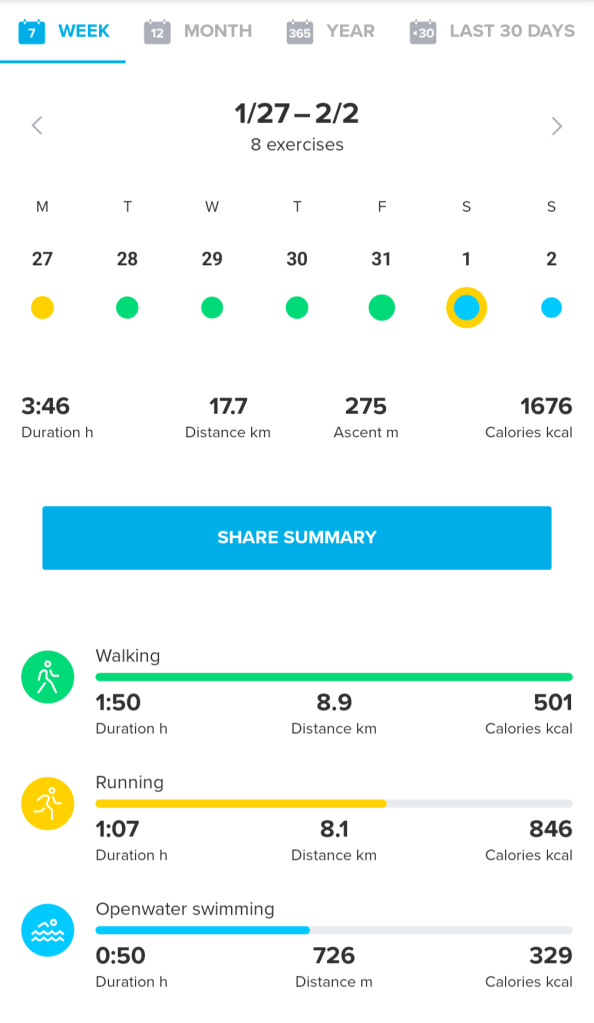 So that concludes the end of week 5. A total of 3hrs 56 minutes exercise for the week..