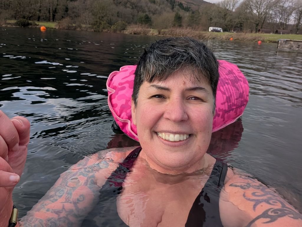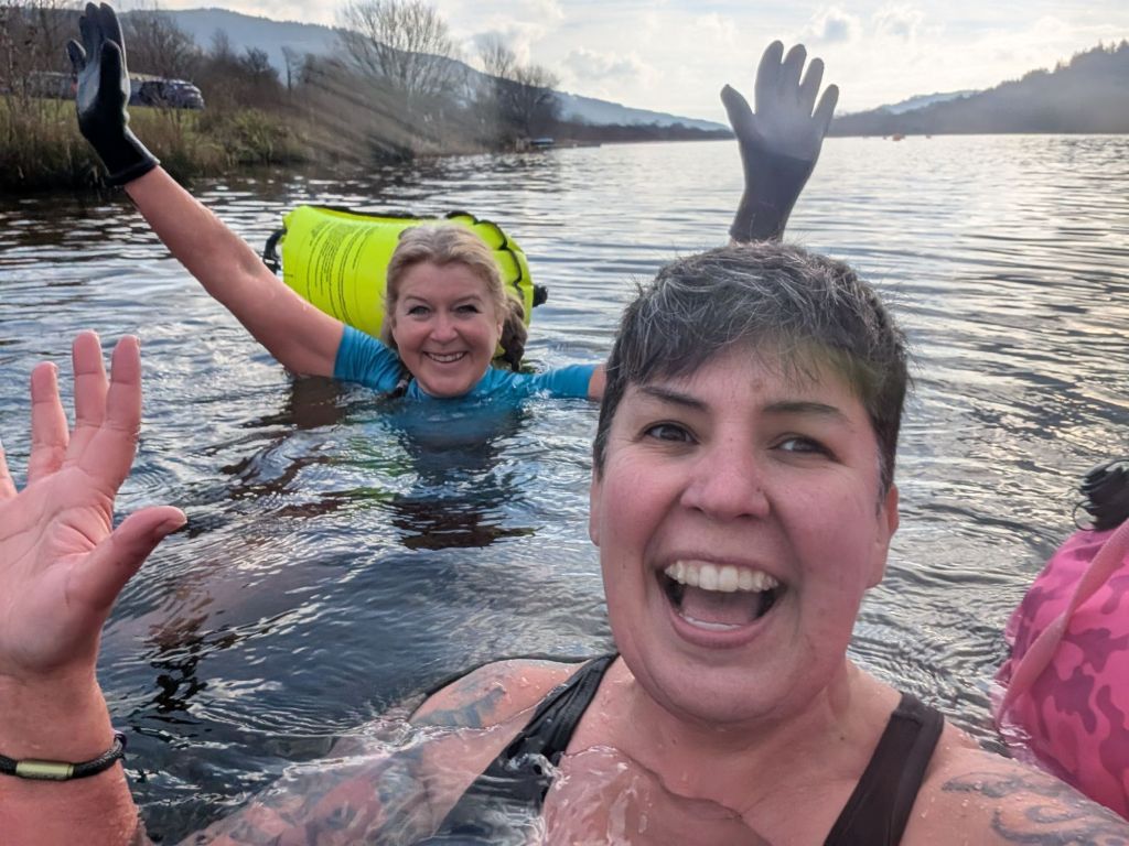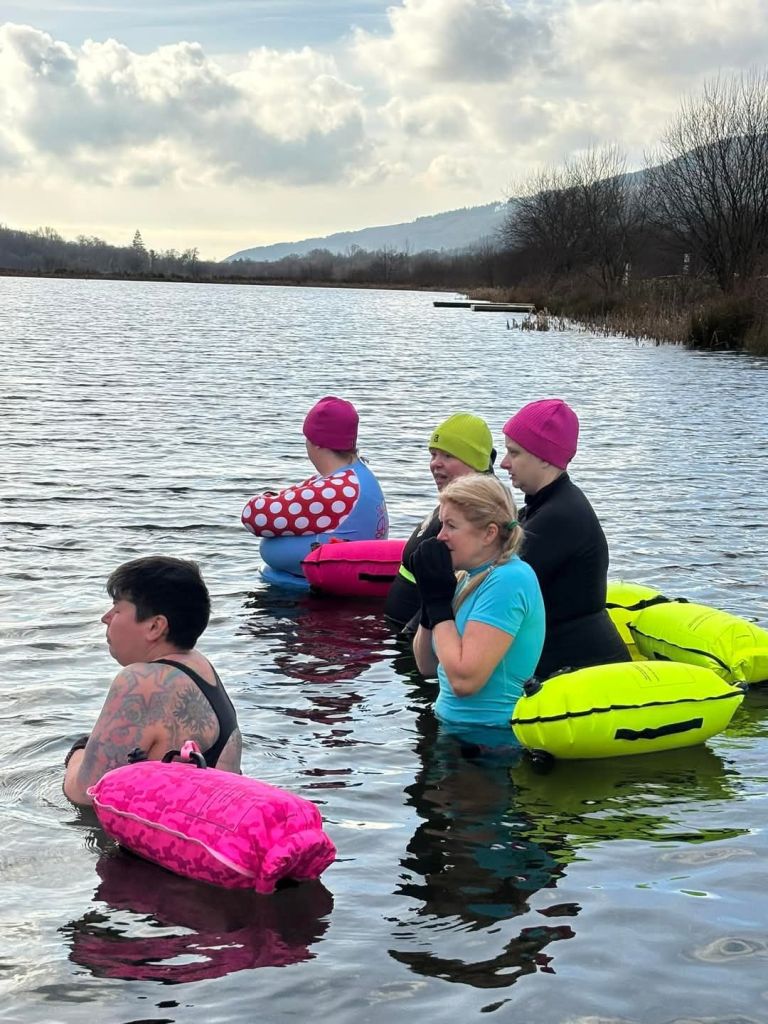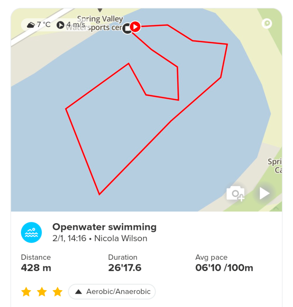 After parkrun I got home and the fire was lit. It was so toasty and warm I didn’t want to leave the house again. However, I had arranged to meet Judith and some other bluetits at Spring Valley Lakes for an afternoon swim. I really didn’t want to do it. I even stood on the edge of the lake and told Judith I didn’t want to do it today, I was cold and just not feeling it. But I got in anyway. It was awesome getting to swim in a larger group. There were 13 of us altogether. The water was cold but warmer than the air I reckon, maybe around 8°. It was absolutely exhilarating and we swam for 25 minutes. I loved it!