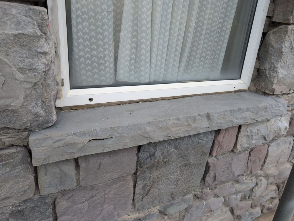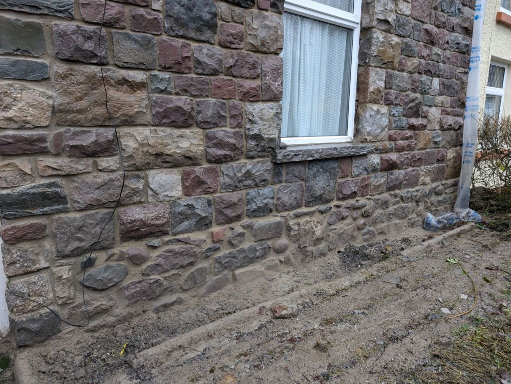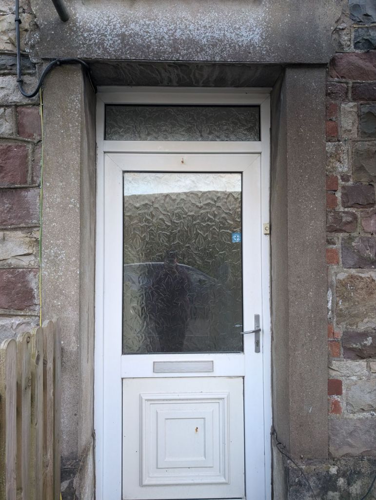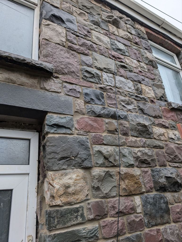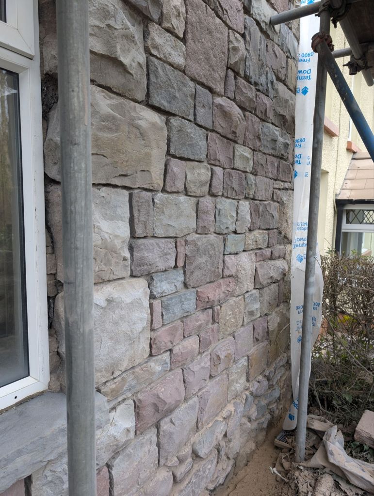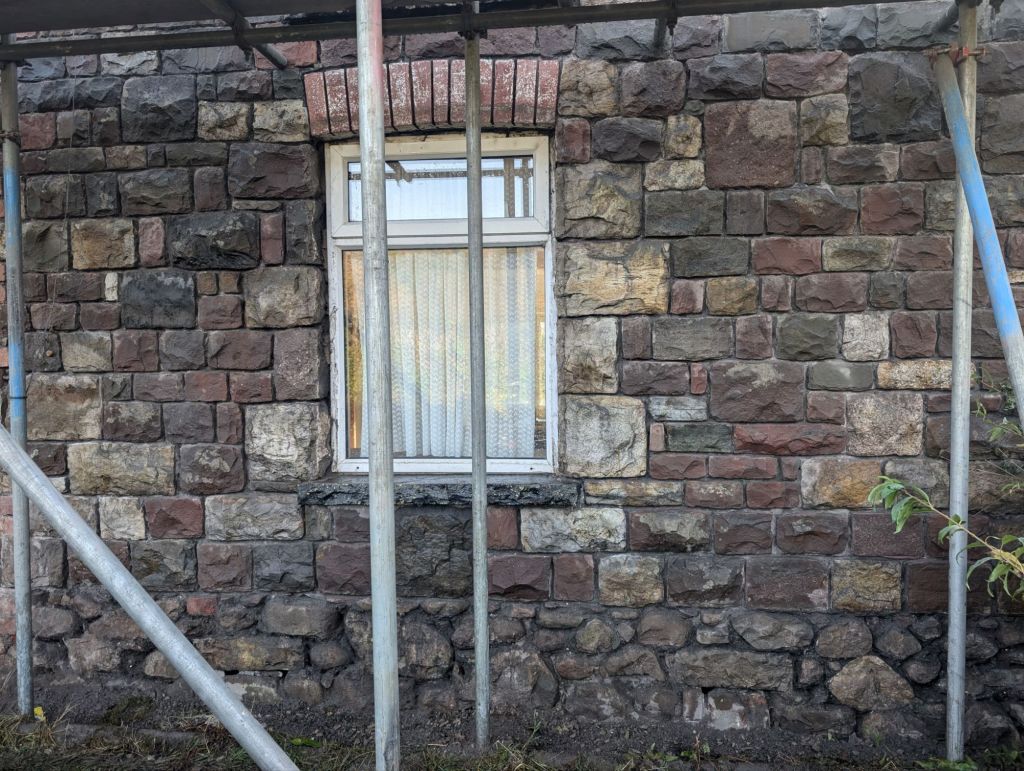 The stone work was completed and the lintel replaced. I did not get a photo of this before the sand blasting was done. We had Mike (Mike’s mobile shot blasting) come and do the sandblasting for us. He done a really good job, the stone and the window sills come up lovely.