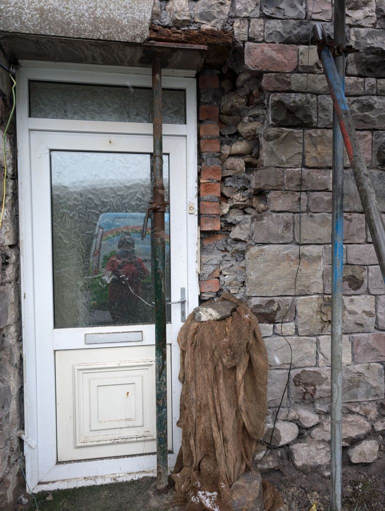 With the front of the house finished, we thought the windows could now go in. We thought wrong. All the lintels inside were wooden and needed replacing before we could change the windows. We were hoping to have the new windows in before Christmas but this has delayed things now. More money and more time. This work could not be done until the new year.