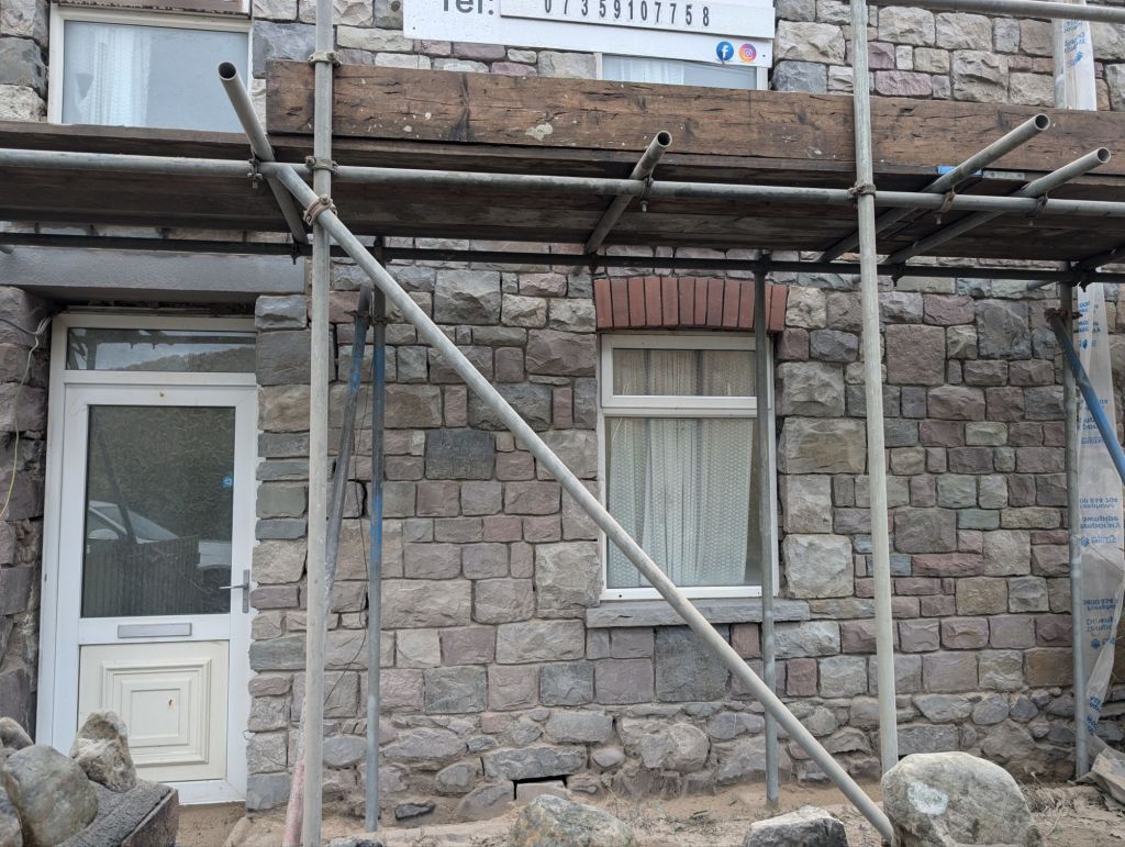 Oh but wait, we can’t put the windows in just yet, we need to do some dirty jobs first. Leanne wanted to get the front of the house sand blasted and repointed. Let’s do that first!