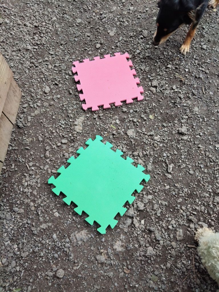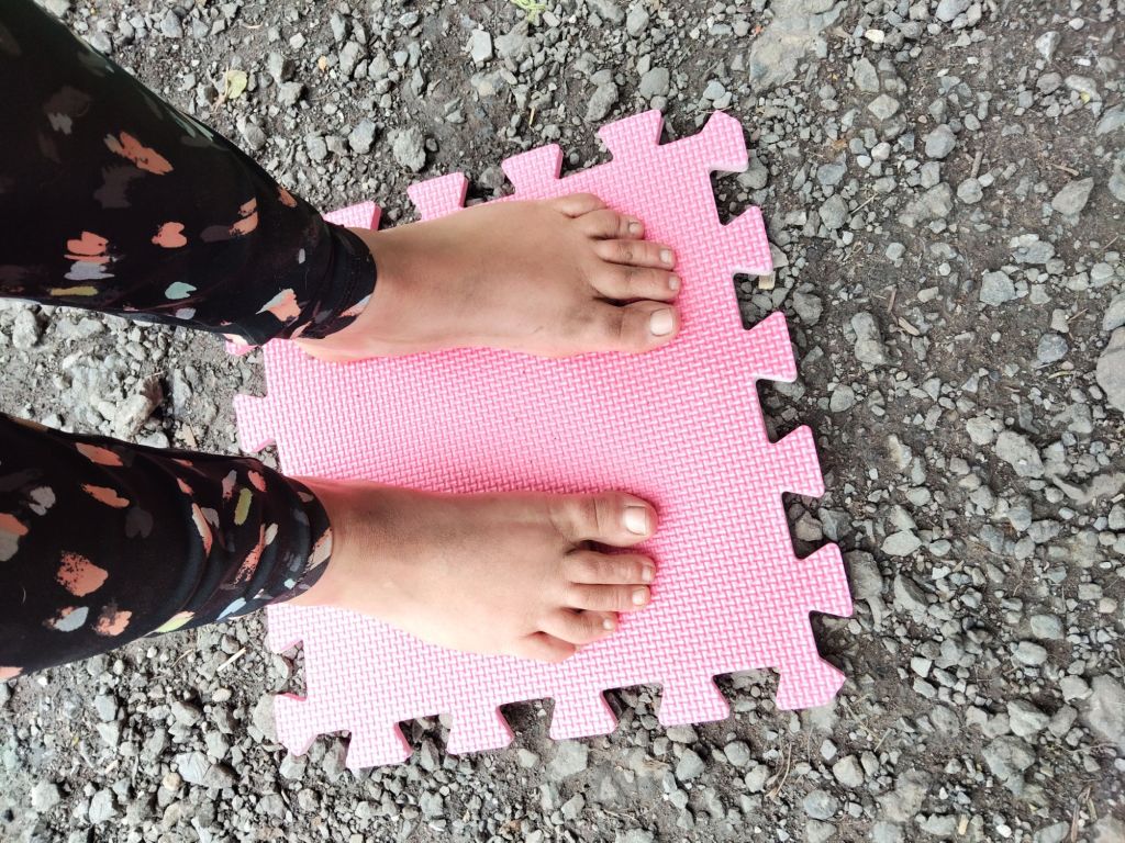 By the end of the day, I’d walked on so much gravel I just couldn’t take it any longer. I can only describe it to the feeling I get when having a tattoo. The first 2 hours are easy, the next 2 hours are tough and then after 4 hours my body says nope, no more. That’s what my feet were like. And mentally I could not focus to make it comfortable any longer. So, I came up with a cheat that didn’t involve shoes. I placed the jigsaw puzzle mats on the floor and used them as stepping stones. Where there’s a will there’s a way 😁.